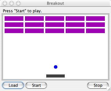 Remember that Breakout uses a class called Board to keep track of all the game pieces -- bricks, balls, paddles, and walls. When we clicked "Load" before, Breakout looked in a configuration file to get the information it needed to build and load a new Board object. We're going to use a simpler process to build our first board.