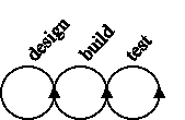 Design, build, test, always with feedback to earlier phases; each is an ongoing process.